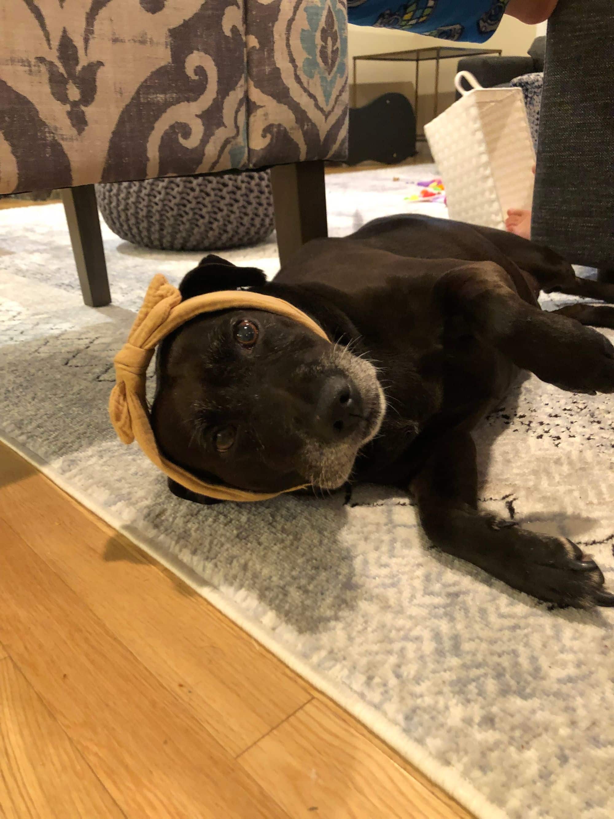 My dog is named Haley, and we estimate that she is about 11 years old. She is all black. I got her the first year of my residency with another dog named Luna, who unfortunately died of cancer just 2 months ago. Haley is the sweetest dog—she is very protective and acts like a watchdog even though she would never hurt anyone. She is great with my kids. She definitely misses her sister Luna, but she also loves being the only canine child.