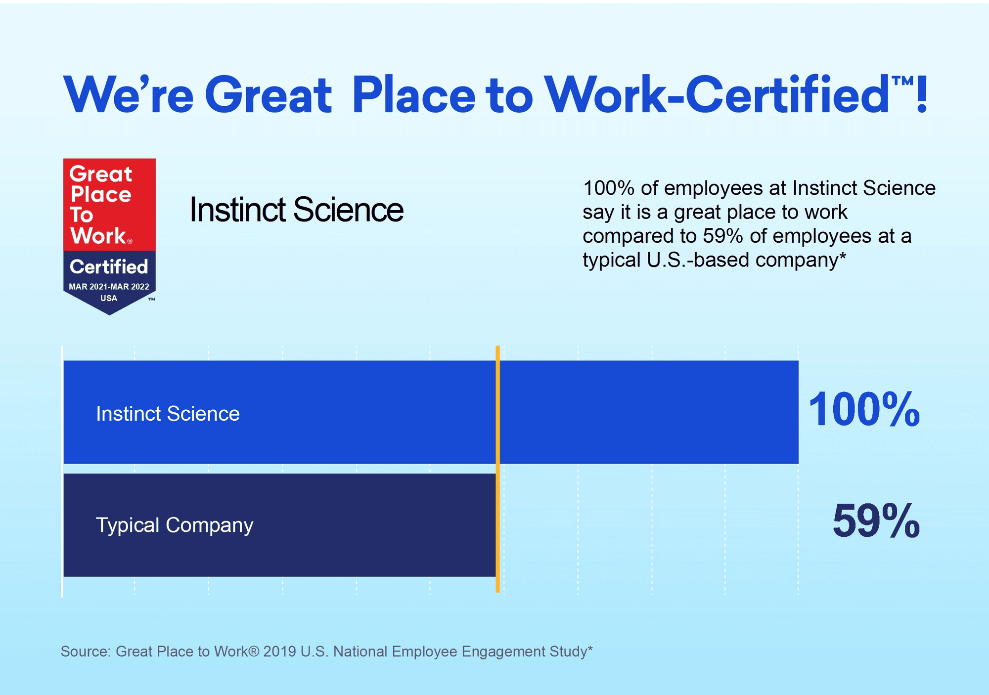 We’ve seen the GPTW certification badge on sites for all kinds of companies, like Google, Salesforce, and Marriott (and that’s just to name a few). So why not Instinct? 😊